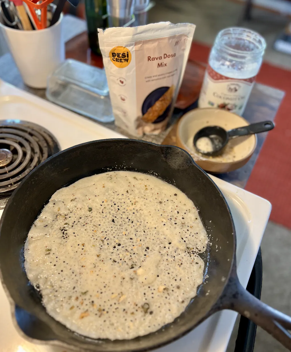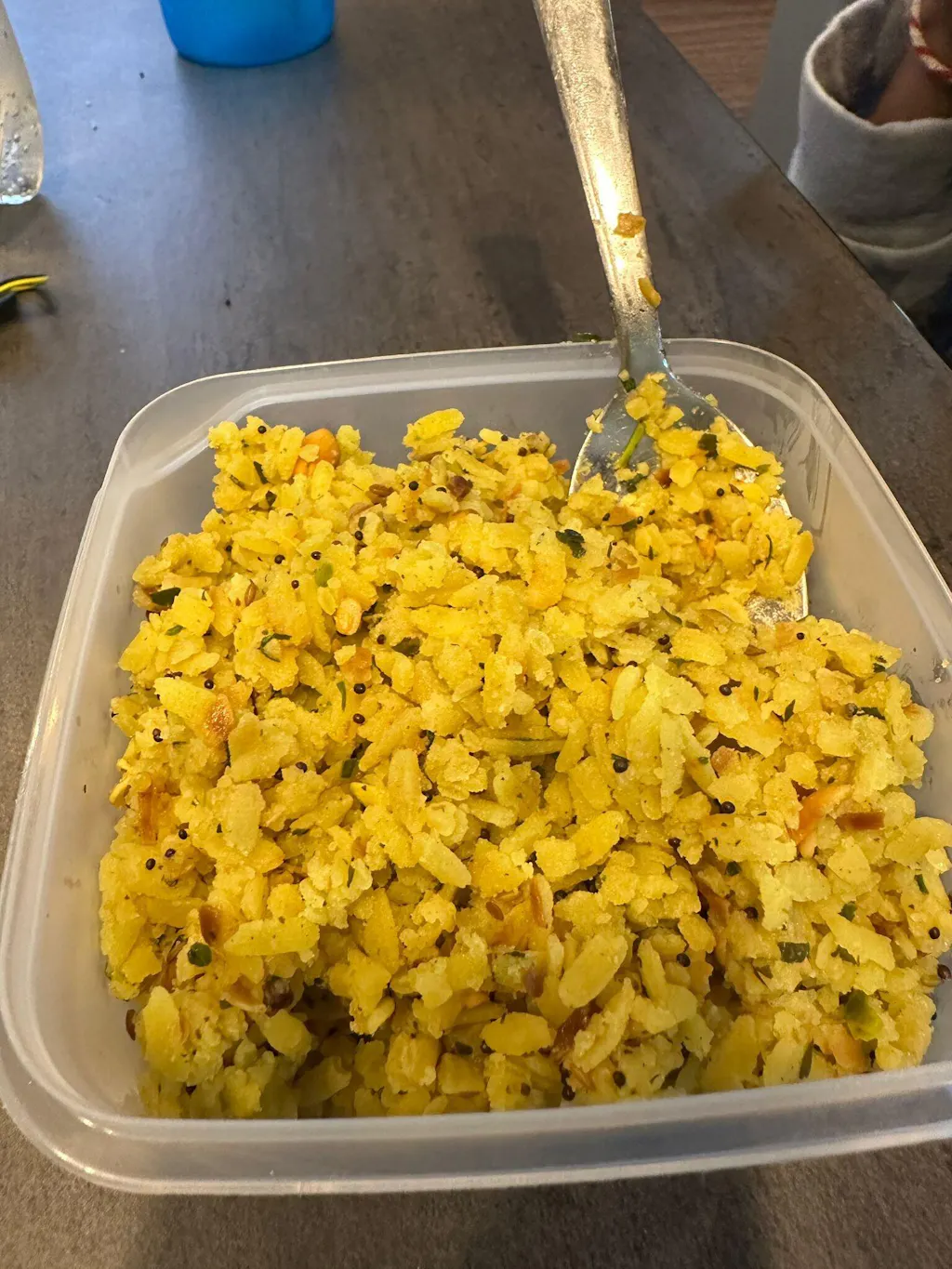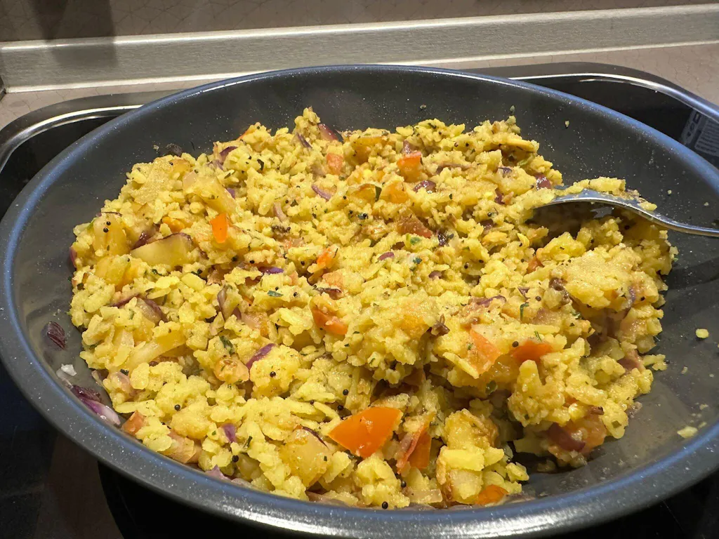 During our recent out of country trip in the first week of July, we got Poha, Rava Dosa, and Gojju. The Poha is especially good — you can even eat it raw as a snack, or just add hot/warm water to enjoy it as a quick breakfast or dinner.